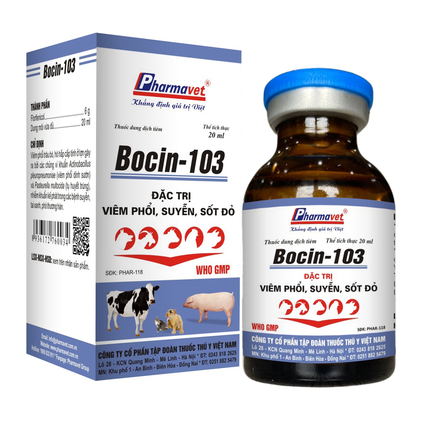 Pneumonia in cattle, acute respiratory tract in swine by Actinobacillus pleuropneumoniae (APP) and Pasteurella multocida (Pasteurellosis), secondary infections in asthma, PRRS, paratyphoid