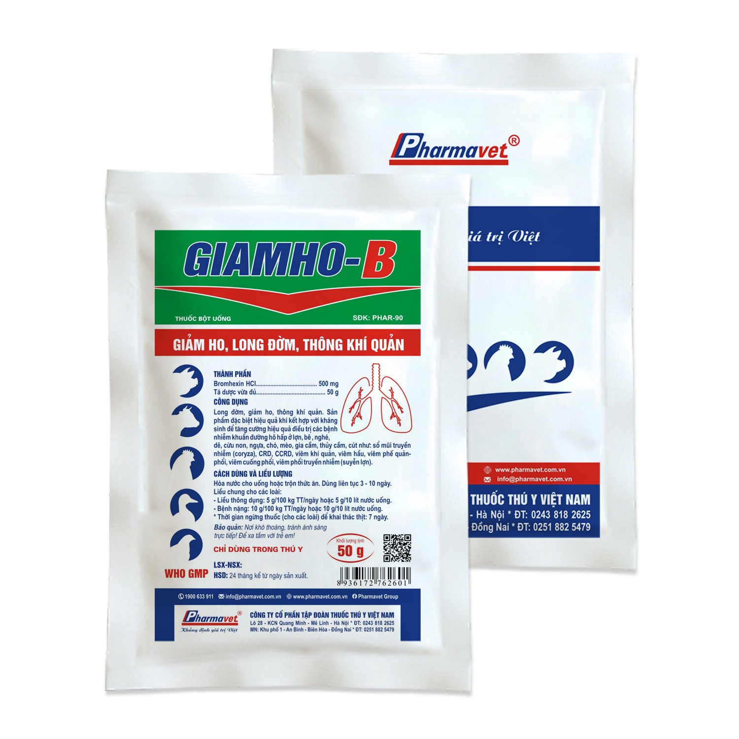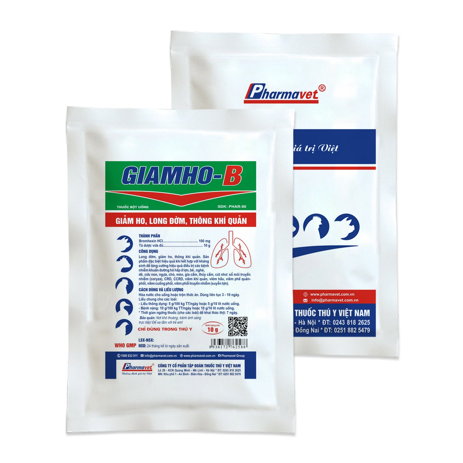 Clear phlegm, reduce cough, clear trachea. The product is especially effective when combined with antibiotics to enhance the effectiveness of treating respiratory infections in pigs, calves, goats, lambs, horses, dogs, cats, poultry, waterfowl, quails such as: infectious coryza (coryza), CRD, CCRD, tracheitis, pharyngitis, bronchitis – pneumonia, bronchitis, infectious pneumonia.