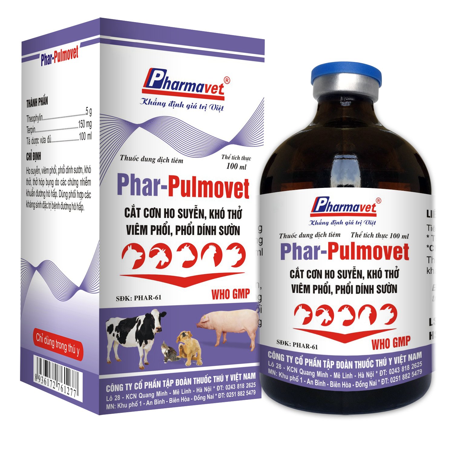 Ho suyễn, viêm phổi, phổi dính sườn, khó thở, thở hóp bụng do các chứng nhiễm khuẩn đường hô hấp. Dùng phối hợp các kháng sinh đặc trị bệnh đường hô hấp.