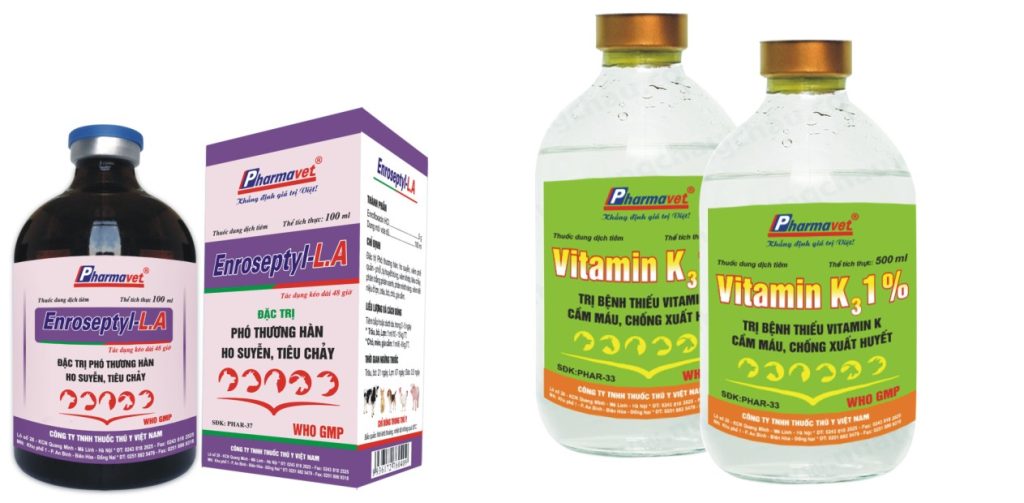 – Con tiêu chảy phân lẫn máu tươi nặng cần tiêm ngay kháng sinh Enroseptyl-L.A (1ml/10 kg P) và Vitamin K (1 ml/5 kg P).