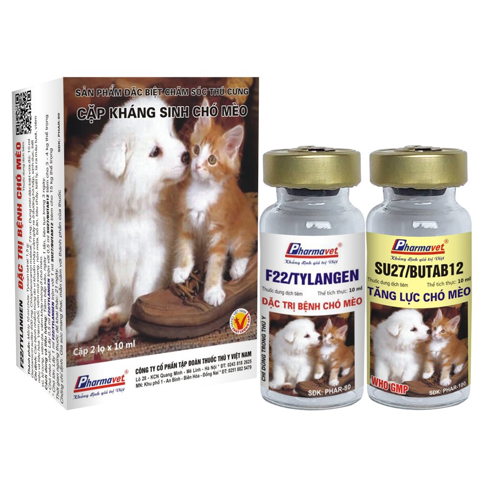 * Chó mèo nhỏ: Lấy 0,5 ml F22/TYLANGEN trộn với 0,5 ml SU27/BUTAB12 tiêm cho 3 – 4 kg TT.
