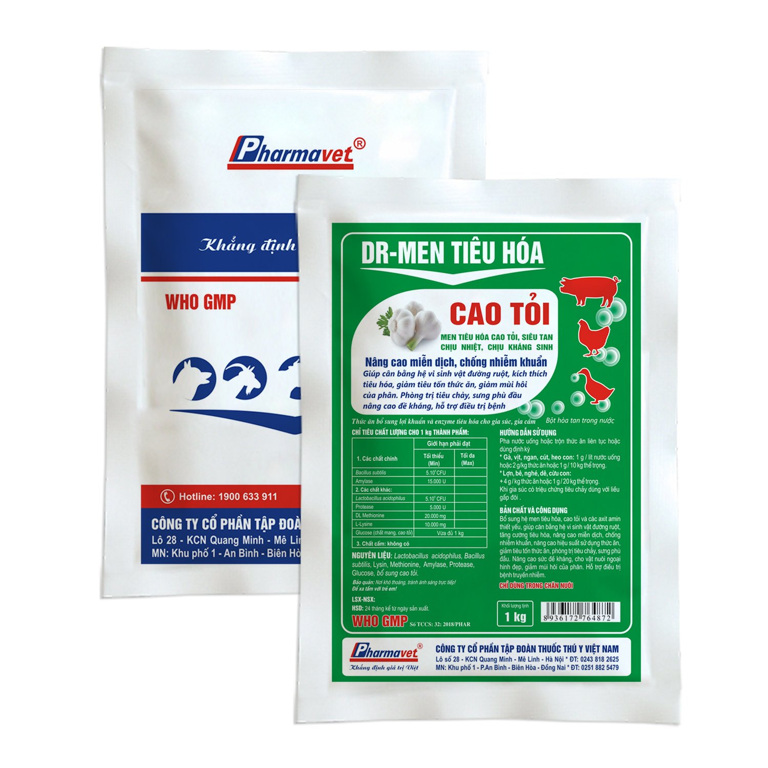 Bổ sung hệ men tiêu hóa, cao tỏi và các axit amin thiết yếu, giúp cân bằng hệ vi sinh vật đường ruột, tăng cường tiêu hóa, nâng cao miễn dịch, chống nhiễm khuẩn, nâng cao hiệu suất sử dụng thức ăn, giảm tiêu tốn thức ăn, phòng trị tiêu chảy, sưng phù đầu. Nâng cao sức đề kháng, cho vật nuôi ngoại hình đẹp, giảm mùi hôi của phân. Hỗ trợ điều trị bệnh truyền nhiễm.