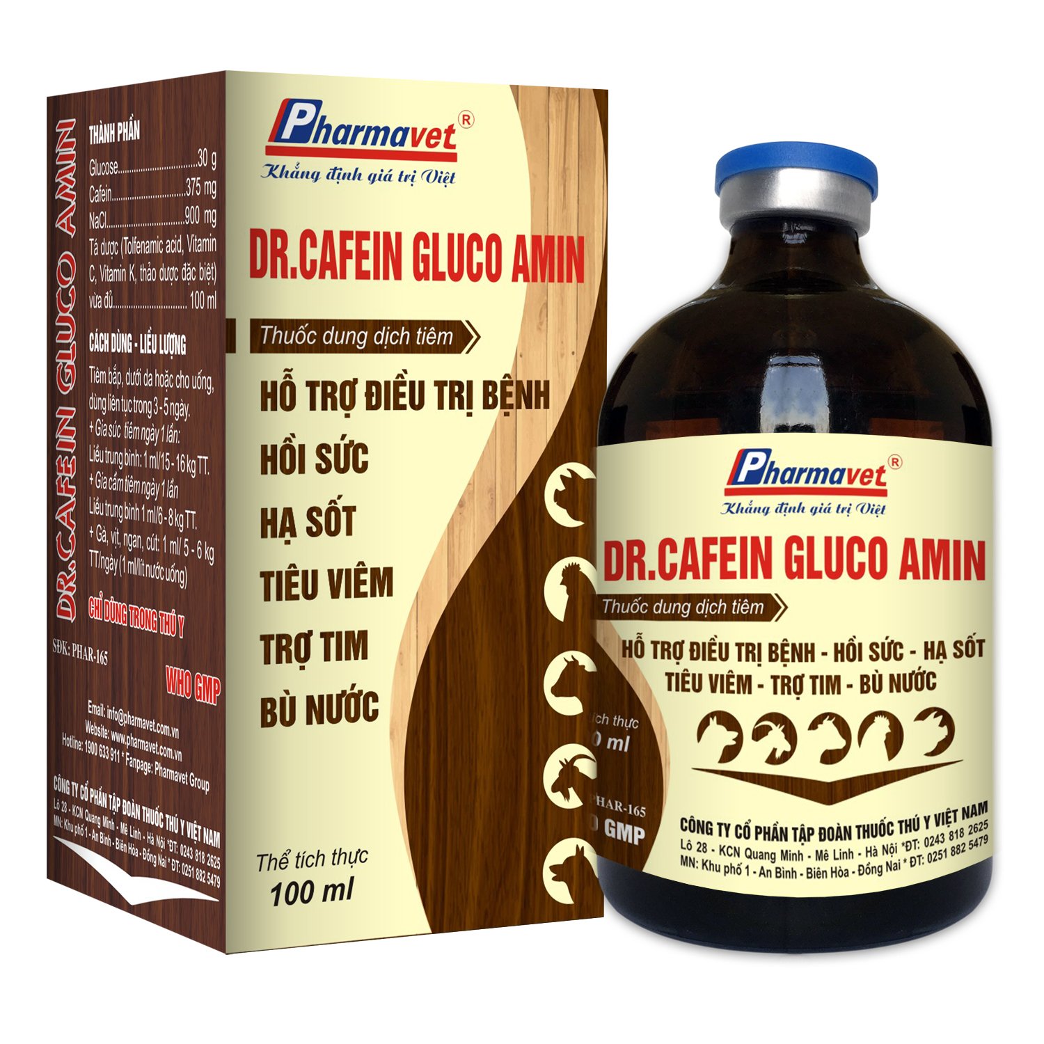 Hồi sức, hạ sốt, kháng viêm, bù nước, hỗ trợ điều trị bệnh, nâng cao sức đề kháng. Tăng lực, giải độc cấp tính, cung cấp năng lượng, giảm stress, trợ tim chống sốc, chống đột qụy, chống mất nước mất chất điện giải do tiêu chảy, nhiễm trùng, nhiễm độc. Trị còi cọc, bại liệt trước và sau sinh sản. Tăng năng suất trứng, thịt. Sản phẩm hỗ trợ điều trị bệnh truyền nhiễm hiệu quả tối ưu như PRRS (tai xanh, sốt đỏ), LMLM, bệnh Gumboro, ký sinh trùng đường máu, sưng phù đầu và các bệnh truyền nhiễm khác.
