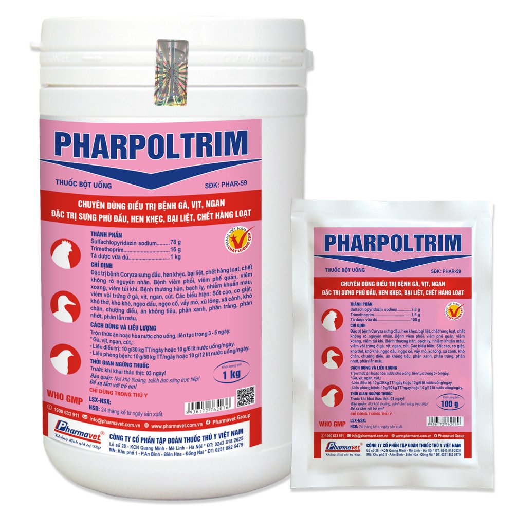 Đặc trị bệnh Coryza sưng đầu, hen khẹc, bại liệt, chết hàng loạt, chết không rõ nguyên nhân. Bệnh viêm phổi, viêm phế quản. Bệnh thương hàn, bạch lỵ, nhiễm khuẩn máu, viêm vòi trứng ở gà, vịt, ngan, cút. Các biểu hiện: Sốt cao, co giật, khó thở, khò khè, khô chân, chướng diều, ăn không tiêu, phân xanh, phân trắng, phân nhớt.